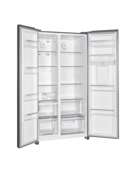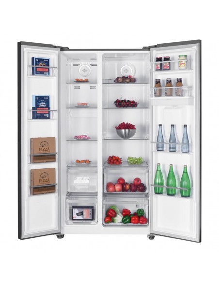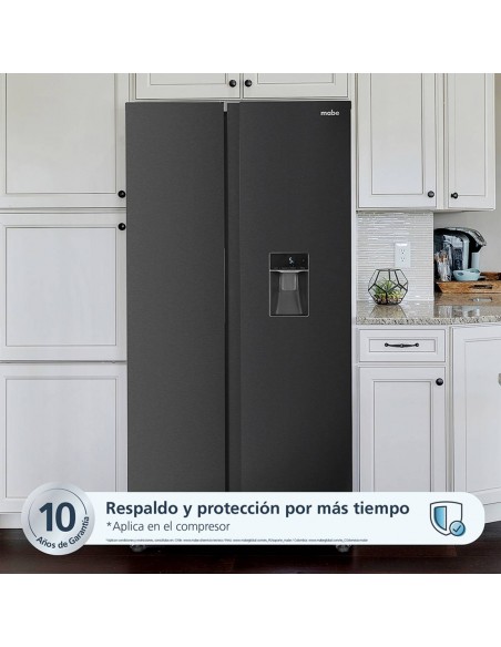 Nevecon Mabe 529 Litros Side by Side Black Steel MSL565QMLSP0 Transforma tu cocina con el elegante Nevecon Mabe de 529 L en acabado Black Steel. Su diseño moderno Side by Side combina capacidad, eficiencia y estilo. Con tecnología Home Energy Saver y compresor TecInverter, ahorra hasta un 67 % de energía, alcanzando la temperatura ideal más rápido. Incorpora un display digital táctil que permite controlar fácilmente funciones como Super Cooling, Super Freezing, modo Eco, control de temperatura y más. Disfruta de agua fresca al instante con su dispensador de agua de 3 L. Incluye iluminación LED, bandejas en cristal templado, anaqueles amplios y cajones transparentes para una organización eficiente. Su apertura tipo Pocket vertical aporta discreción y funcionalidad. Ideal para familias que buscan espacio, rendimiento y elegancia. Cuenta con alarma de puerta abierta y materiales de alta resistencia. Respaldo de calidad con 10 años de garantía en el compresor TecInverter. ¡Rinde más, consume menos!