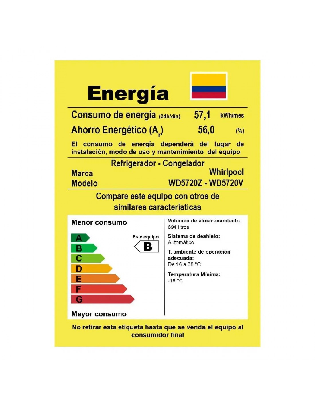 El Nevecon Whirlpool 694 Litros Side by Side Xpert Inverter Negro WD5720V combina gran capacidad, eficiencia y diseño premium para tu cocina. Con tecnología Xpert Inverter y 10 años de garantía en el compresor, optimiza el consumo energético manteniendo temperaturas estables. Su dispensador exterior de agua y hielo (en cubos o triturado) con filtración EveryDrop™ ofrece comodidad sin abrir la puerta, mientras que el acabado antifingerprint mantiene la superficie impecable. La distribución interior incluye 4 parrillas de cristal templado, 3 cajones para frutas, verduras y carnes frías, y anaqueles ajustables para galones, maximizando el espacio. Iluminación LED de alta eficiencia para mejor visibilidad, sistema Auto Defrost que ajusta automáticamente la temperatura, y controles electrónicos touch para un manejo preciso. Fabricado en acero inoxidable negro con manijas externas, ofrece un estilo moderno y resistente. Ideal para quienes buscan un nevecon de alto rendimiento, elegante y duradero para el día a día.