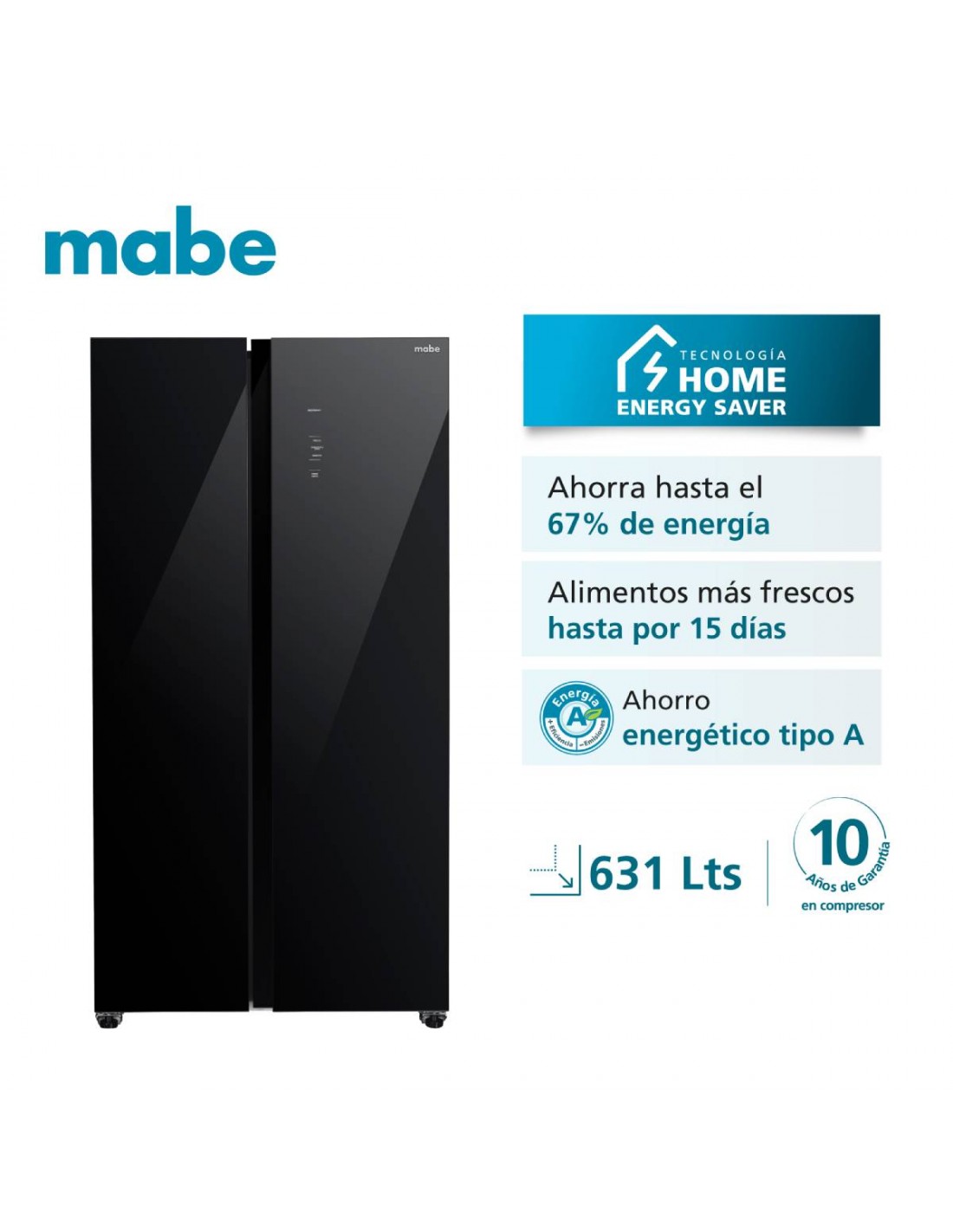El Nevecon Mabe 631 Litros Brutos Side by Side Black Glass MSL631LKLNG0 combina diseño premium y alto rendimiento. Su exterior en vidrio templado tipo espejo Black Glass aporta elegancia, resistencia y fácil limpieza, neutralizando rayos UV para conservar el brillo. Con tecnología Home Energy Saver y compresor TecInverter Eco Advance con 10 años de garantía, logra hasta 58% de ahorro de energía usando gas refrigerante R600. El Display Glass Touch permite manejar funciones como Super Freezing, Modo ECO, Vacaciones, Alarma y bloqueo de panel con un solo toque. Su sistema Total Fresh Flow mantiene los alimentos frescos por más tiempo con enfriamiento uniforme y temperaturas de hasta -25°C. Incluye Cajón Convertible Humidity Zone ajustable entre -3°C y 5°C, ideal para vinos, carnes o verduras, además de cajón de frutas y verduras con control de humedad. Sus bandejas y parrillas de cristal templado ofrecen resistencia y organización flexible, mientras la iluminación LED y anaqueles amplios optimizan el espacio. Eficiencia, frescura y estilo en un solo electrodoméstico.