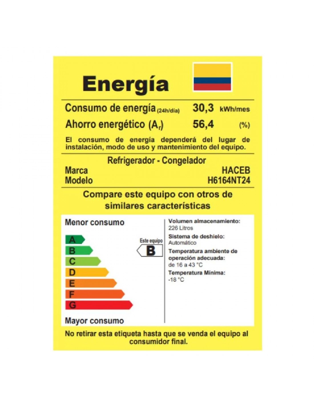 Ofrece amplio espacio interior, iluminación LED de alta cobertura y un fabricador de hielo con cubos 60% más grandes. Con 243 litros brutos / 226 litros netos, su distribución modular permite organizar mejor tus alimentos. Haceb respalda esta referencia con 10 años de garantía en el compresor.