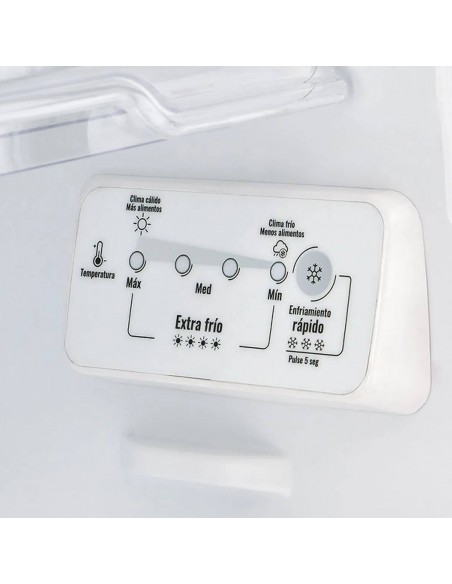Incorpora el avanzado Sistema de Conservación Haceb Himalaya, que combina frío sectorizado, temperatura estable por zonas, corrientes de aire óptimas, compartimiento Extra Frío y bandeja para frutas y verduras con control de humedad, manteniendo los alimentos frescos por más tiempo. Su panel digital interno facilita un control preciso de la temperatura e incluye función de enfriamiento rápido.