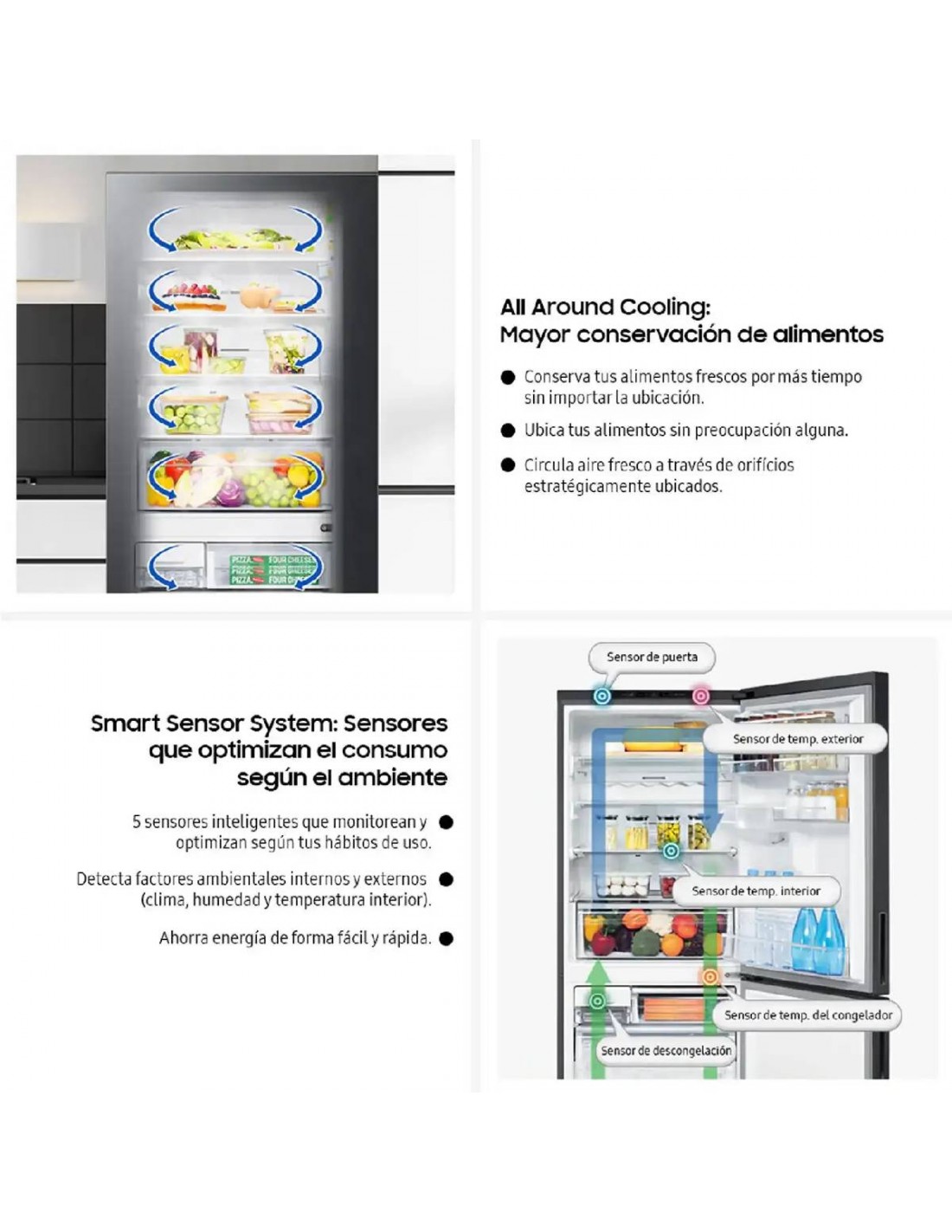 - SmartThings AI Energy Mode - Diseño estilizado - All around cooling - Power Freeze - Puerta Reversible