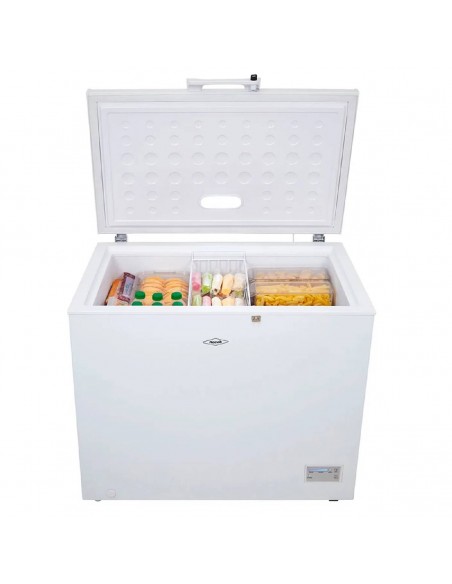 El Congelador Horizontal Haceb de 251 litros brutos es la solución perfecta para almacenar grandes volúmenes de alimentos con eficiencia, seguridad y facilidad. Su función dual te permite elegir entre refrigerar o congelar según tus necesidades, brindando total flexibilidad para uso doméstico o comercial. Además, cuenta con panel digital externo, lo que facilita el control preciso de la temperatura sin necesidad de abrir la puerta.