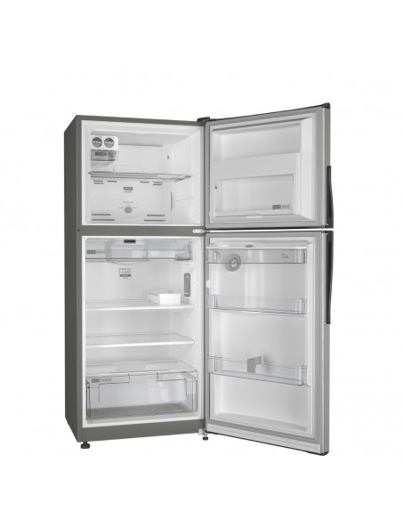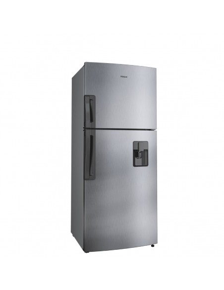 Nevera Whirlpool Top Mount 394 Lt Silver WRJ43AKTWW Con superficie Anti finger print que evita que se marquen las huellas dactilares y lo mantiene siempre como nuevo, y dispensador de agua con tanque de 4L. Cuenta con compartimiento cold room, 2 parrillas ajustables de vidrio templado, 1 cubierta de cajón para legumbres, 1 cajón de verduras con control de humedad, y 2 anaqueles fijos en la contrapuerta: 1 con capacidad de lata y 1 con capacidad de galón. Además Twist Ice, Luz LED, Sistema de deshielo automático y control electrónico de temperatura.
